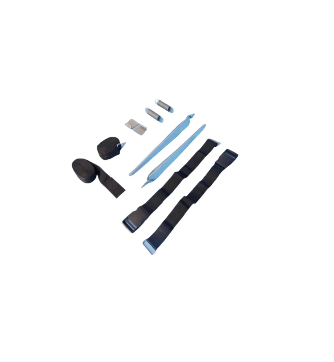 Comes with two 300cm adjustable bands & the necessary stakes & tension springs.Â